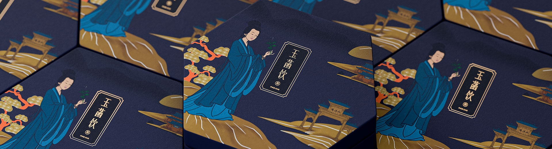 我們的整體品牌包裝以東莞羅浮山為創(chuàng)作背景,融合了羅浮山的道教圣地文化。主要符號是東晉時期的女神醫(yī)"鮑菇",她以經(jīng)典的形象展現(xiàn)在包裝上。同時,我們將羅浮山的自然風(fēng)情與現(xiàn)代文雅的表現(xiàn)手法相結(jié)合,創(chuàng)造出具有東方文化精髓的整體包裝。通過這樣的設(shè)計(jì),我們傳遞了人們對純樸自然生活方式的向往。